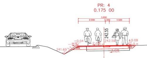 Dne 16.12.2019 byla zprovozněna na místě bývalého chodníkového tělesa společná stezka pro cyklisty i pěší s asfaltobetonovou obrusnou vrstvou. Pás pro chodce je od cyklostezky oddělen dlažbou a barevně rozlišen. Úsek je doplněn veřejným osvětlením a mobiliářem.