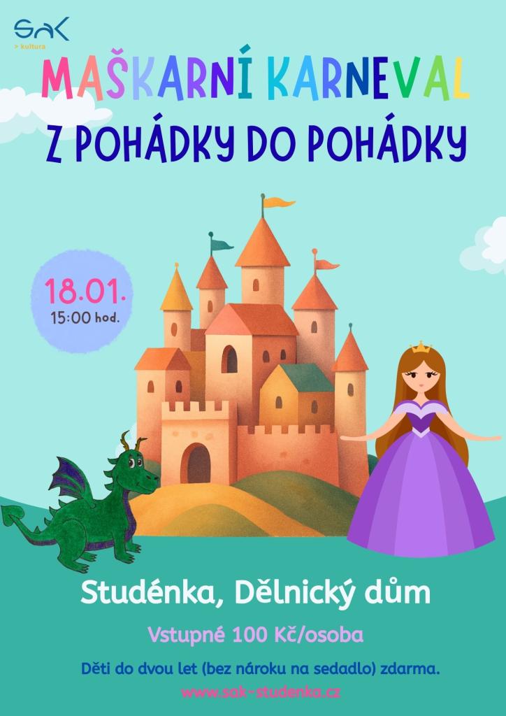 Na malé princezny, rytíře, zvířátka i superhrdiny čeká kouzelná show plná fantazie a radosti. Do Studénky totiž tentokrát zavítá usměvavá princezna a nezbedná čarodějnice, které dětem otevřou dveře do pohádkové říše. Společně přičarují i tajemnou pohádkovou postavu jako překvapení a rozpohybují celý sál veselými písničkami, tancováním a soutěžemi.