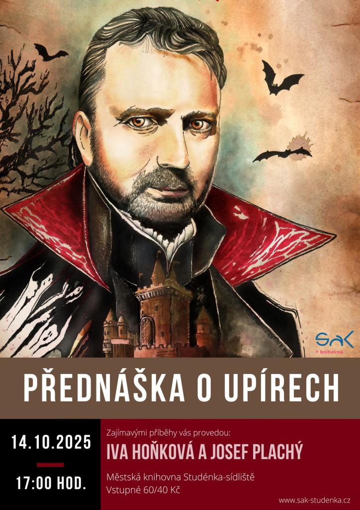 Na přednášce se vydáme prozkoumat některé z nejzajímavějších příběhů. Mnohé z nich jsou napsány rukou uznávaných kronikářů i vystudovaných doktorů. Tyto zápisy jsou pro nás stěžněm v moři plném informací, o které bychom se s vámi chtěli podělit. Ale nejen to. Zapátráme i v přítomnosti, protože ta je, alespoň z našeho pohledu, stejně bohatá (co se témat vampýrství týče) jako doba našich předků.