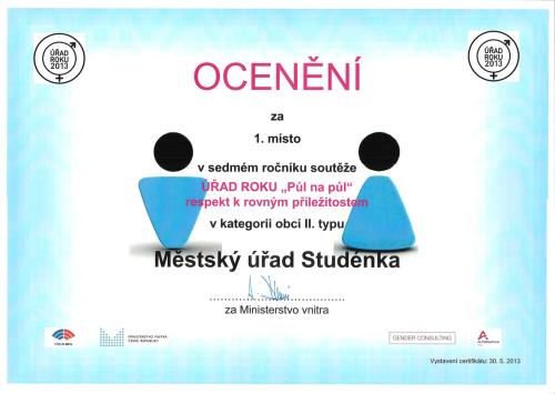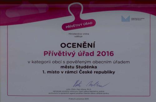 Městský úřad Studénka v projektu DOBRÝ ÚŘAD získal dvě ocenění