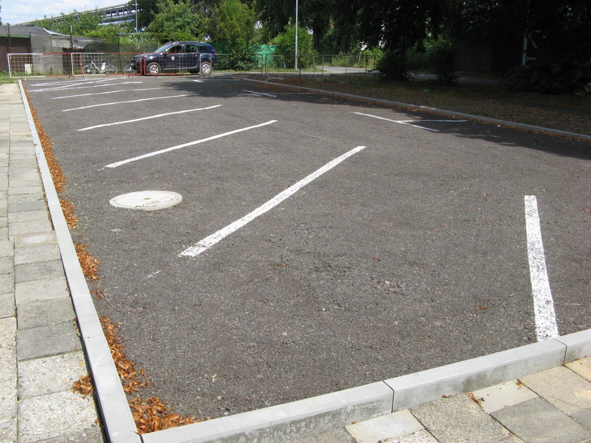 Na odst. plochách je naznačeno i dočasné vodorovné značení pro orientaci řidičů při parkování, aby byla využita plná kapacita odstavných ploch.