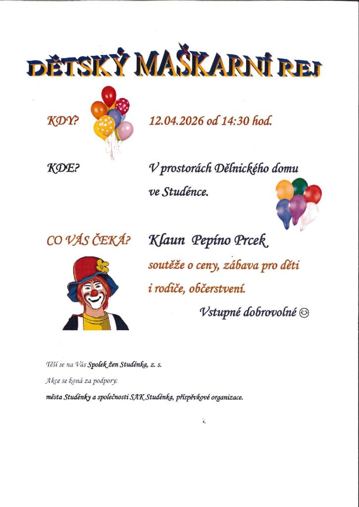 Přijďte si užít odpoledne plné smíchu, tance a veselých masek.